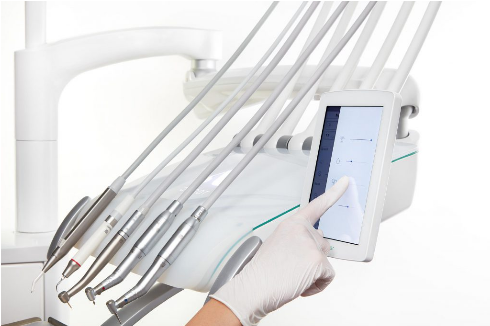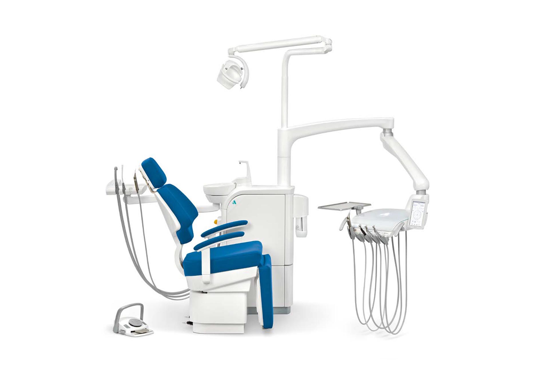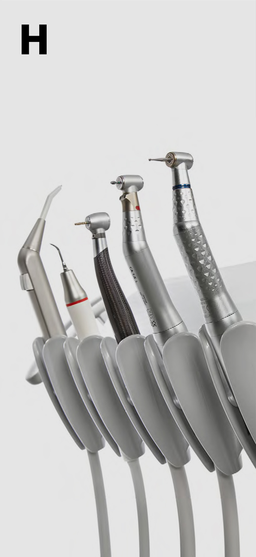 - Abnehmbares und sterilisierbares Mundspülbecken sowie Becheraufnahme
